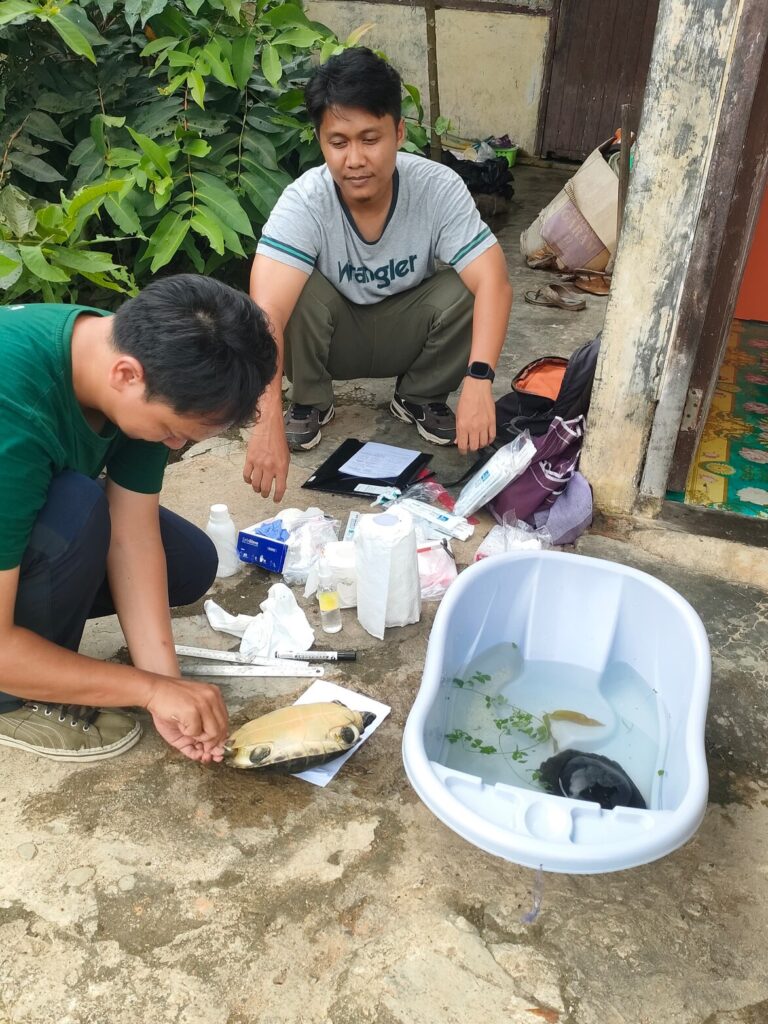 On the following day (05/07), the sampling continued in Hulu Sungai Selatan and Balangan Regencies, covering 3 different locations. In South Kalimantan, Herdhanu was accompanied by Drh. Abi, a veterinarian supporting this project. During this leg of the journey, samples were collected from five individuals.